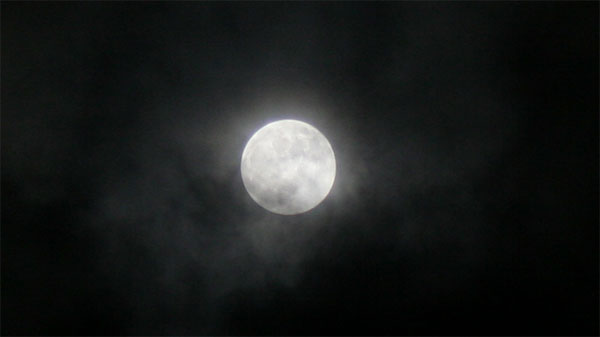 Kurz nach 22 Uhr zeigten die Wolken endlich erste kleine Lücken und für wenige Augenblicke kontne man dazwischen den Mond sehen. Hier ein Foto von 22:06 Uhr: