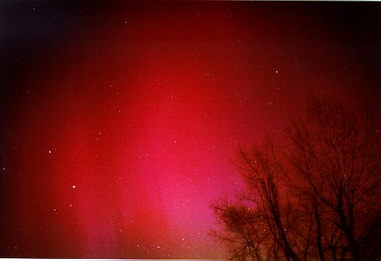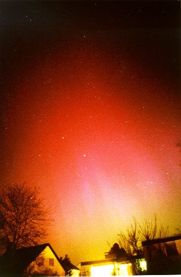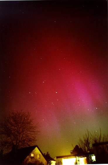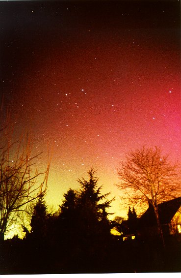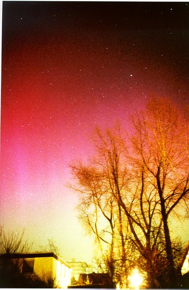 Links von den Bäumen, in Richtung NW geschaut wurde das Nordlichtschauspiel an diesem Arbeit immer farbenprächtiger: