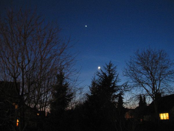 Zum ersten Mal taucht die schmale Mondsichel auf - noch deutlich unterhalb der Venus.